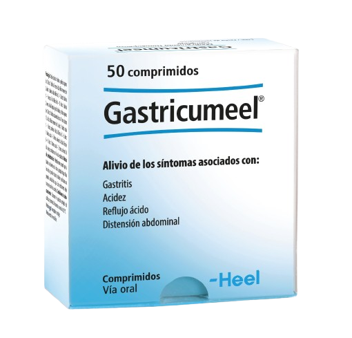 INDICACIÓN: Alivio de los síntomas asociados con la gastritis, incluyendo acidez, reflujo ácido y distensión abdominal. Es un medicamento homeopático, no exceder su consumo. Leer indicaciones y contraindicaciones en la etiqueta. Si los síntomas persisten consulta a tu médico. Gastricumeel® Tabletas REGISTRO SANITARIO No. MH2016-0000432-R1